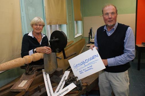 Die Schaufensterpuppe in der alten Uniform des Napoleons der Schützengilde, eine Drechselbank, hier und da noch wenige Bilder an den Wänden, das sind die verbliebenen Ausstellungsstücke im vorderen Schauraum. Und auch die sind bald ausgeräumt und zwischengelagert, damit die Handwerker einziehen können. So erklärte Jürgen Maack, als er mit seiner Ehefrau Rita zu Anfang dieser Woche das Schild mit dem deutlichen Hinweis „Geschlossen“ am Außeneingang anbrachte – sozusagen als vorläufig letzte Amtshandlung vor dem Neustart.