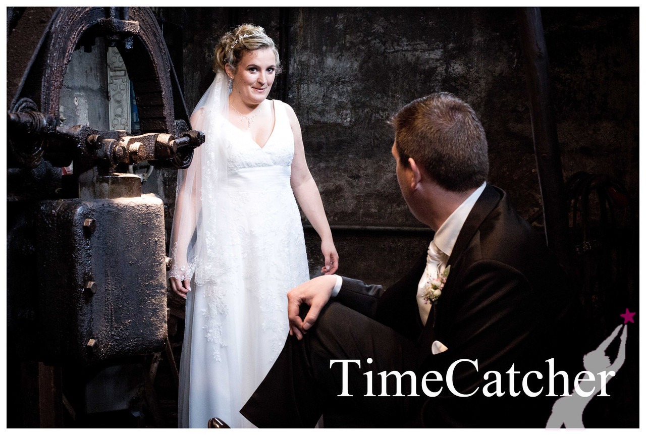 Das Ehepaar Tegtmeier aus Hessendorf ist das erste Hochzeitspaar, das zu Indoor- Aufnahmen in die Museumsräumen der Exter Eisenhämmer kam.