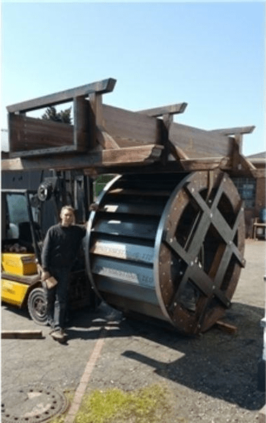 Frohe Kunde aus Exten: Das Geld für die Wiederbelebung des oberen Eisenhammers ist da. Jetzt wartet alles mit Spannung auf die Baugenehmigung. –Jetzt liegt sie vor!- Solide Arbeit vom Mühlenbauer in Winsen/Luhe. Das neue Wasserrad inklusive Einlauftrog für den oberen Eisenhammer ist so gut wie bereit für den Einbau.